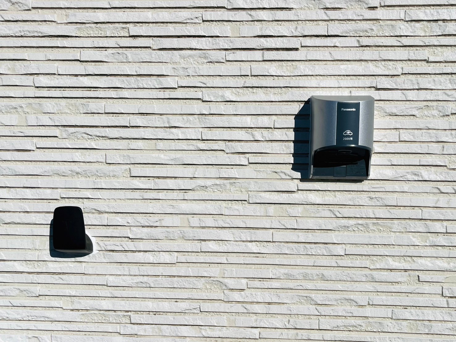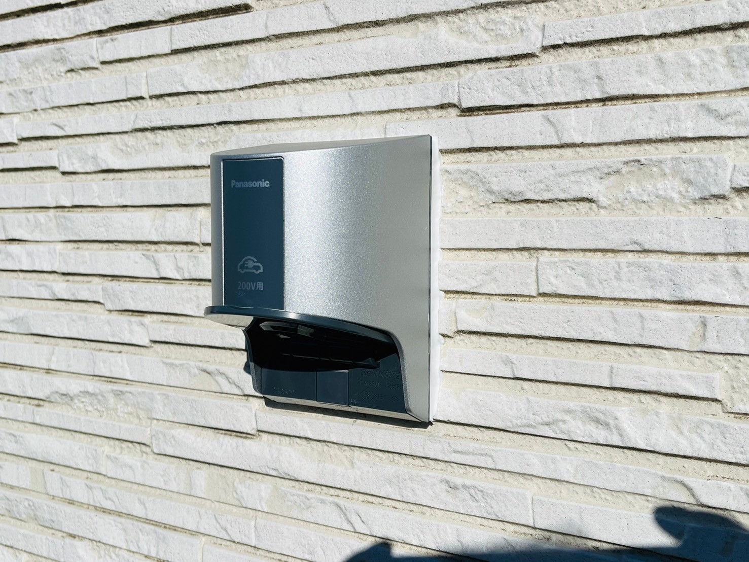 お客様より新規にEV車をご購入との事で建物の駐車場側面にEVコンセントを増設させて頂きました
